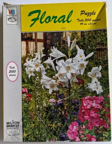 8. Lilium aus der Floral-Serie, MB, 300 Teile - Die Teile sind in einem sehr guten Zustand. Die Box ist eingedruckt und trägt deutliche Gebrauchsspuren Fertiges Bild, 2 €